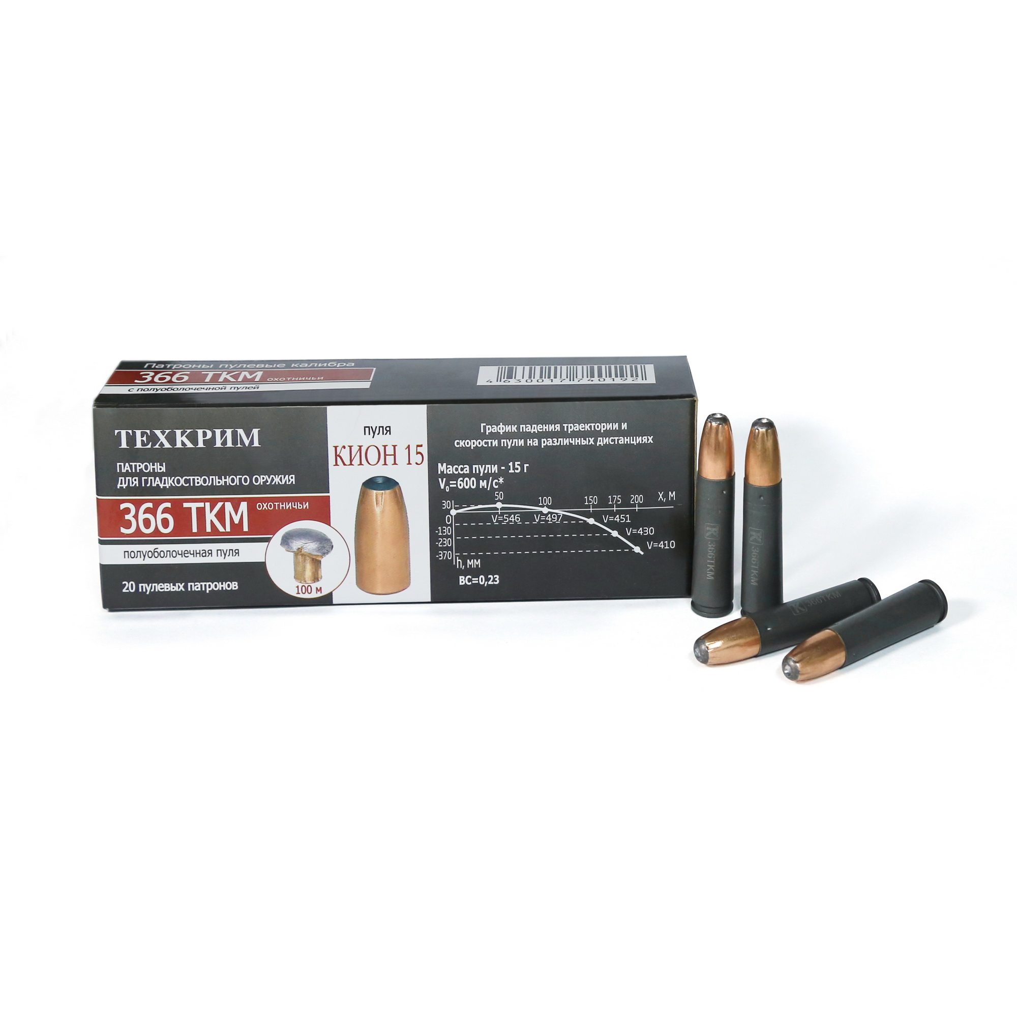 Патрон пулевой Техкрим 366ТКМ SP Кион, 15гр ( 20шт.)