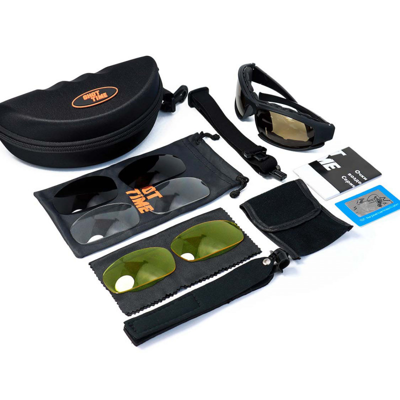 Очки стрелковые ShotTime Pantera, защитные, черные, линза: жёлтая, коричневая, прозрачная, поляризац