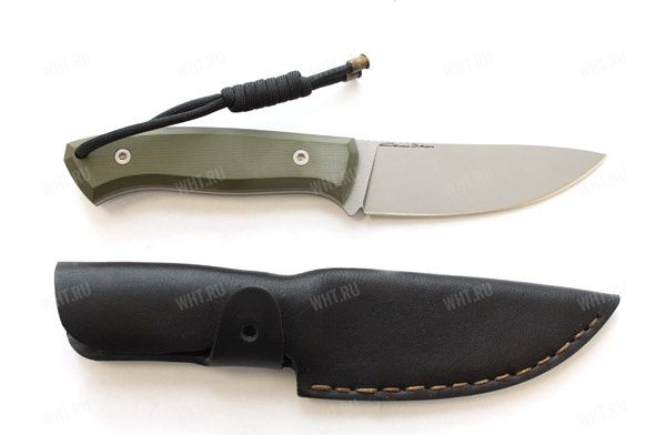 Нож "Бобр" с чехлом, клинок D-2, рукоять G10, цвет болотный (Сталь N690)